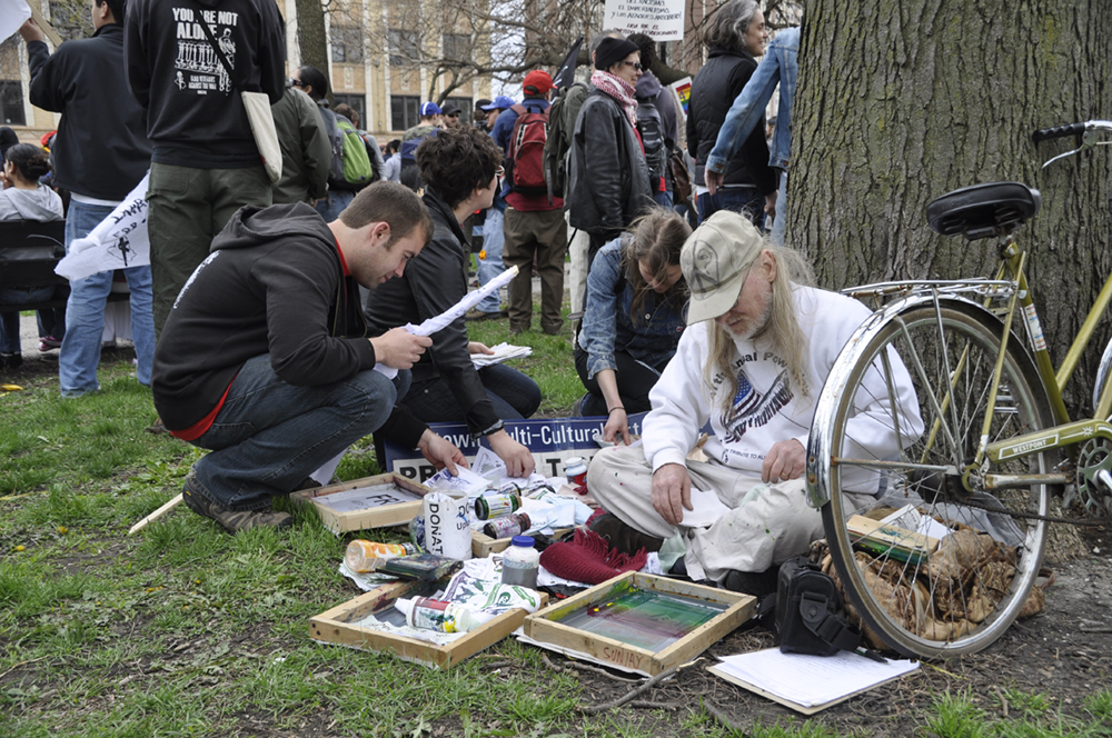 Chris Drew (1950-2012) nicknamed “Patron Saint of Street Artists” for his devotion to grassroots artists through the non-profit organization he headed, Uptown Multicultural Arts Center (UMCAC)–for 25 years housed at the American Indian Center in Uptown, Chicago. Chris Drew, a non-paid Exec. Director, taught hundreds how to use computers bridging the digital divide for underserved, and how to silkscreen and with a goal of how to market their wares-make a living with art.