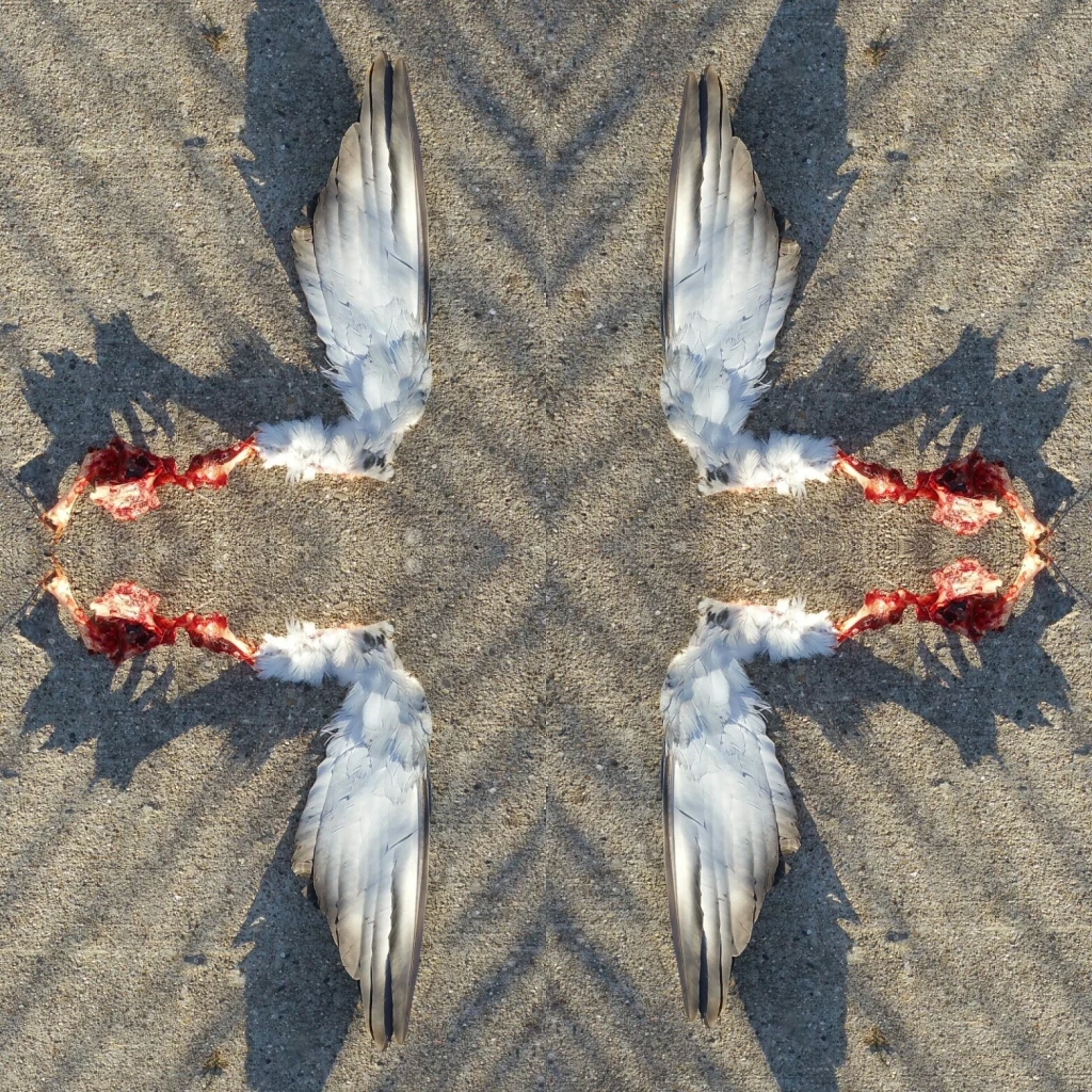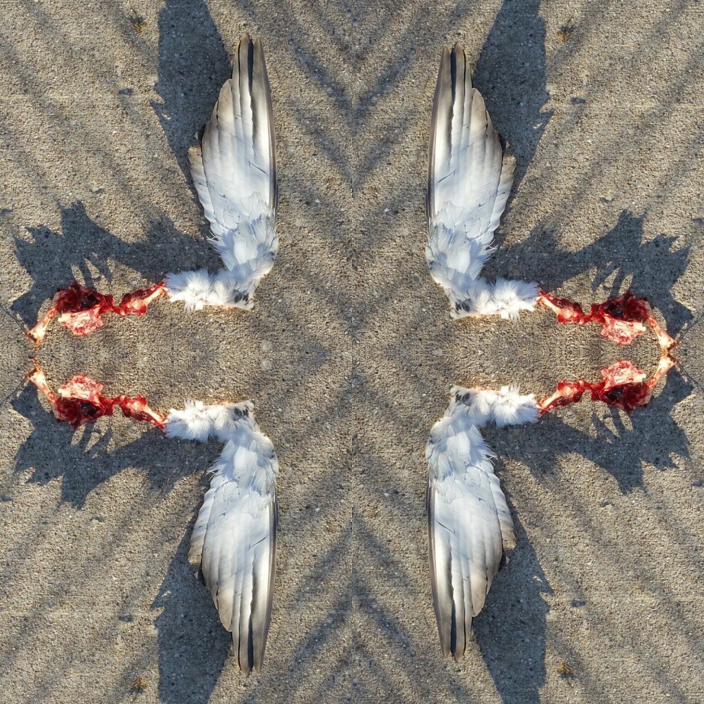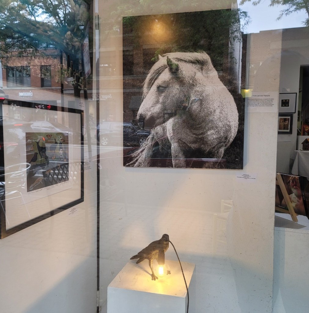 “From Jarlshof Pasture” manipulated photo infused on metal 24″ X 30 ” C. 2021 David Bechtol“Broken Wings” digitalpaint/photo on infused metal plate framed 16″x16″ c.2022 Nancy Bechtol“Renascence for Edna ” (detail) color laser print on paper with edges hand colored.10″x8″ c. 2022 James McNeill Mesple’
