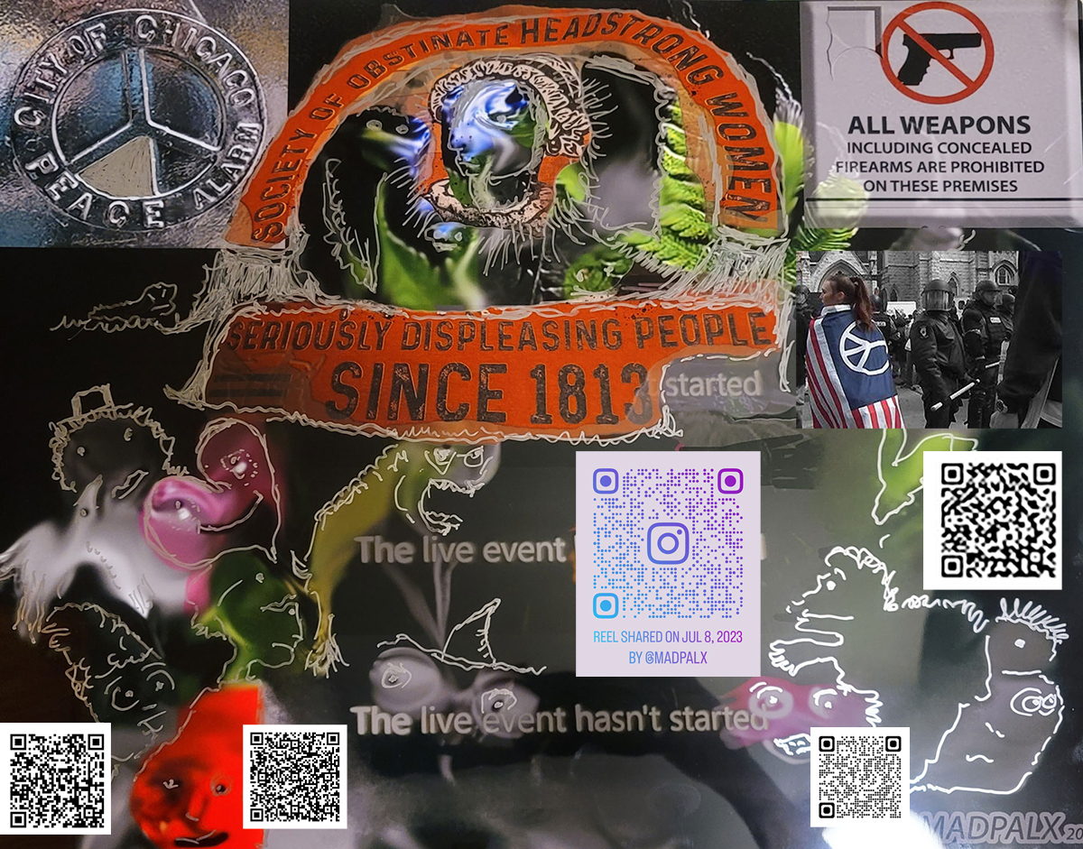 “Society of Obstinate Headstrong Women” of which I am a proud member! My art-above- exhibited includes QR codes to scan which identify issues facing women since 1813 and before! ongoing issues of equality, rights and identity. Intensely amazing exhibit! Women lead the way! Support Women Artists!