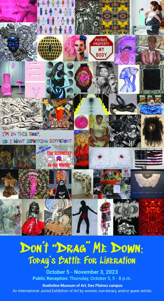 Oakton’s Annual WGSS Program Art Exhibition, in its 15th year, is drawn to respond to what’s happening in the world and to our communities. There have been many changes in U.S. legislation in the last year that threaten our bodily autonomy, our gender identities, our sexualities, and our intellectual freedoms. Alongside the shifts in law and policy have been a culture of exclusion and violence at the local, state, national, and corporate levels. What undergirds this legislation? Why have women and pregnant persons across our country lost access to vital reproductive healthcare services? Why are transgender youth the targets of increasingly discriminatory laws? Why are book bans and censorship threatening our public libraries and schools? And what kind of society do we live in when a drag queen story hour becomes the site of politicized violence and state control? As history reveals time and time again, the fight for justice and equity is never finished. We have witnessed renewed attacks on reproductive justice, bans on life-affirming care for transgender and non-binary youth, attacks on the freedom of ideas and teaching accurate history in education, book bans and censorship, racialized terror and gun violence, and environmental threats to indigenous communities and ecosystems. We are in the fight of our lives and we refuse to go backwards. How can we work together to create a more just and liberatory society for ALL of us?
