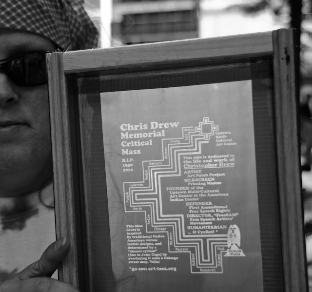 Raven Roberts-Potawatomi-Miqma-Onedia – Speaking on Chris Drew and Critical Mass link. Heralding the love of bikes and support surrounding both. Raven is a Native American artist, Educator. She knew Chris since she was 5 years old, along with many members of her family and friends from the American Indian Center. Raven was also a community artist with the Uptown Multi-Cultural Arts Center (UM-CAC)© 2012 video/Chris Drew Legacy Interview #6. by Nancy Bechtol, APA Photojournalist.
